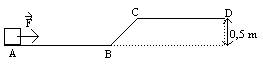 3.- Sobre un cuerpo de masa 5 kg. es ejerce una fuerza de 30 N en el tramo AB de 2m, siendo el coeficiente de rozamiento de 0,1. Suponiendo que la fuerza de 30 N sólo actúa en AB, calcule a) la velocidad en B, c) la velocidad en C, d) el largo del tramo CD, suponiendo que en D se detiene. RESOLVER USANDO CONCEPTOS DE ENERGíA.
