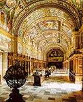 Sin embargo todos estos datos abrumadores quedan relegados por la primera sensación que embarga al visitante que tras subir la empinada escalera traspasa por primera vez la puerta que da acceso a la sala principal de la biblioteca. Es un espléndido salón de 54 m. por 9 de ancho y 10 de alto cuyas paredes y bóvedas están pintadas al fresco con alegorías de fuerte expresividad y colorido.