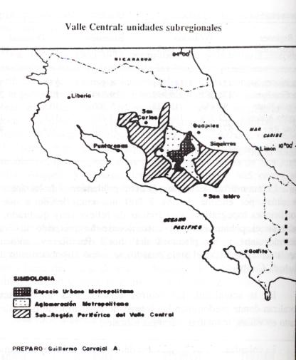 Durante el período de 1940 a 1998, Costa Rica experimenta en un intenso proceso de urbanización localizado principalmente en el Valle Central, que comprende la zona de mayor importancia económica y demográfica del país desde la época colonial. El ámbito regional articulado a partir de las actividades económicas y sociales localizadas en la ciudad capital abarcaba en la actualidad un territorio de aproximadamente 600 km.