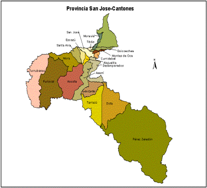 Como se puede ver la Provincia de San José es muy extensa, en tanto que el Cantón de San José, es una unidad relativamente pequeña dentro del contexto provincial. No obstante, es dentro del Cantón Central de san José que se encuentra la Capital de la República de Costa Rica.