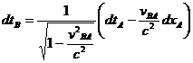 respecto a B (cosa que significa que se mueve con respecto a A a la velocidad: